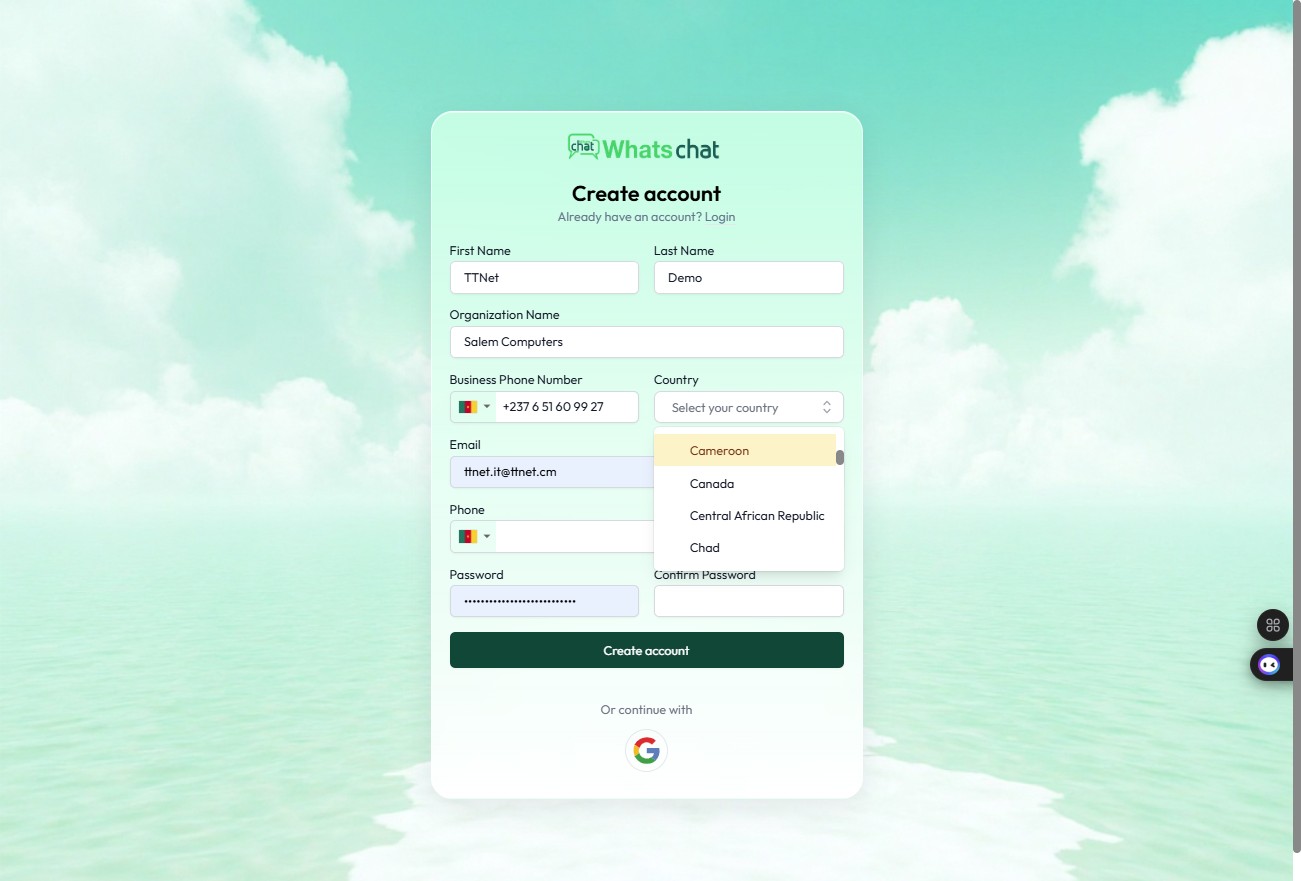 Step 1: Navigate to the login page (https://business.whatschatads.com/login) to begin